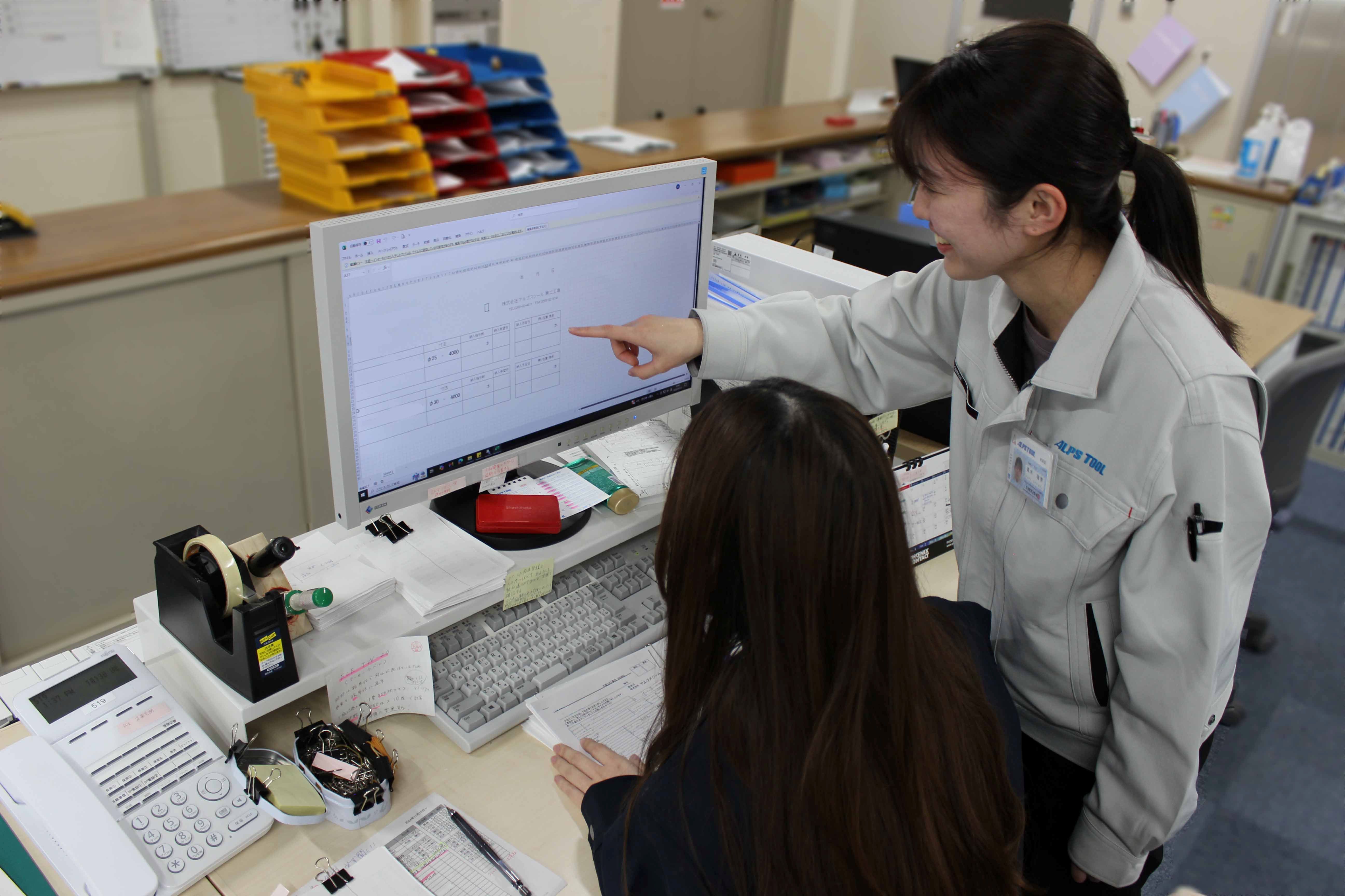 BtoBで事務職として働きたいと考えていました。学内の説明会にて、たまたまお話を聞いたことがきっかけでアルプスツール当社を知り会社説明会に参加しました。製造業となるとどうしても理系のイメージが強くなりますが、当社は理系出身者よりも文系出身者が多く「未経験でイチから始めるという方がほとんど」です。私自身も文系出身のため知識も経験もないまま飛び込むことに不安がありましたが、工作実習や職場体験実習といった新入社員への充実したサポートがある点や、面接の際に皆さん物腰やわらかく話してくださった点に惹かれてアルプスツールを選びました。