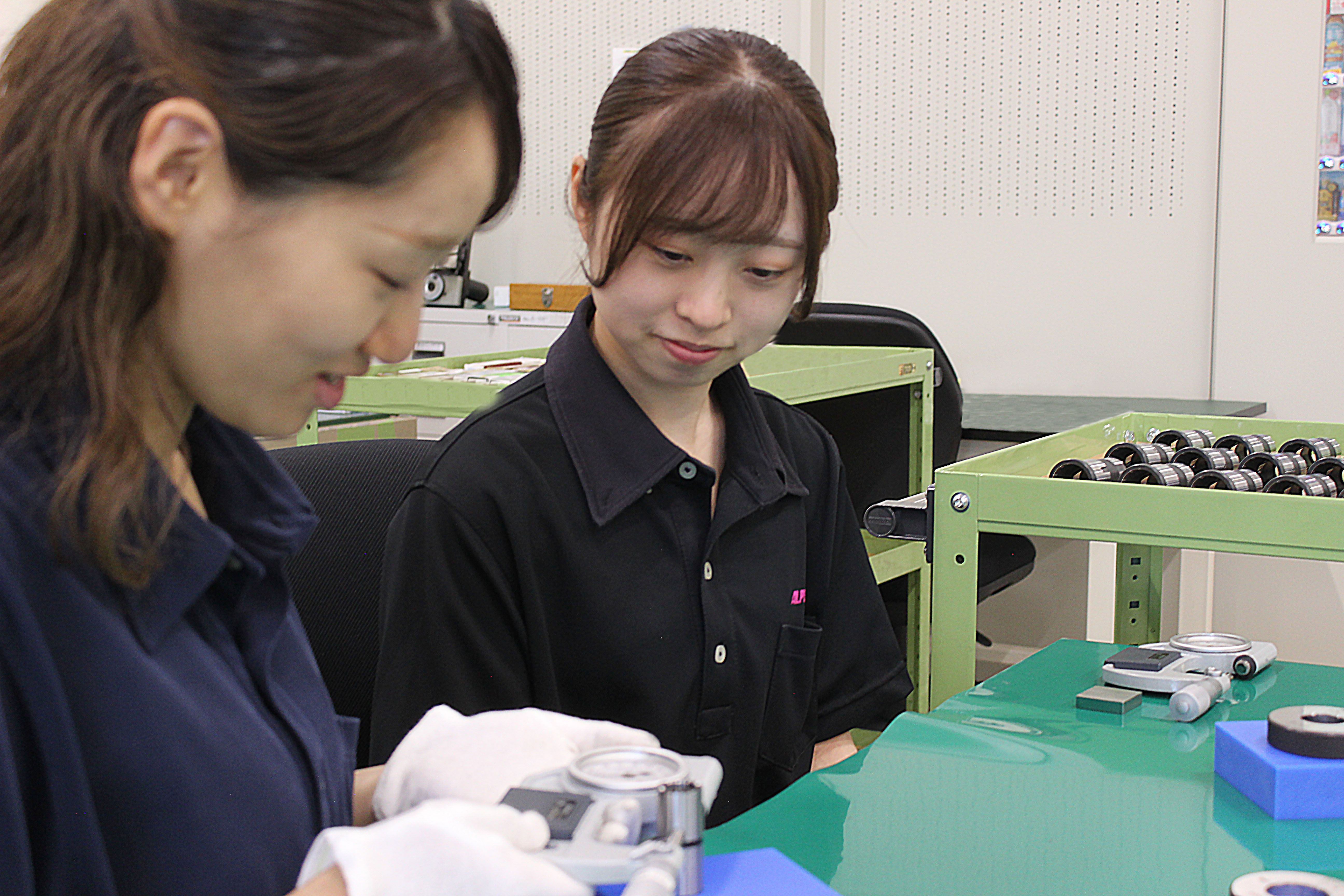 検査している製品の使用用途などを考慮しつつ、合格品の選定を正しく出来たときにやりがいを感じます。当社は多品種少量生産であるため、製品の種類が非常に多いです。リピート品もありますが、一人で新しい製品の検査がきちんと出来たときは嬉しいです。計測器も製品や測定箇所によって使い分けるため、様々なものを用います。特に三次元測定機や真円度測定機といった装置は社内でも使える人が限られているので、操作を覚えて使用できている事はとてもやりがいを感じられます。
